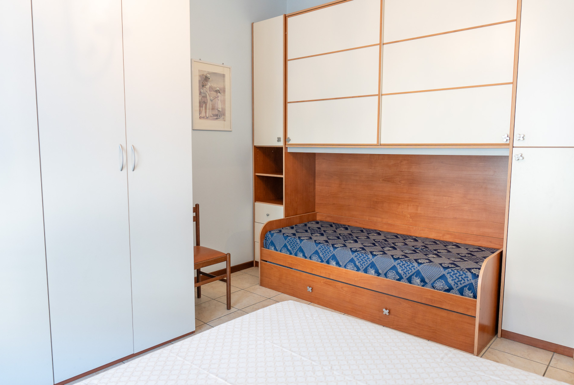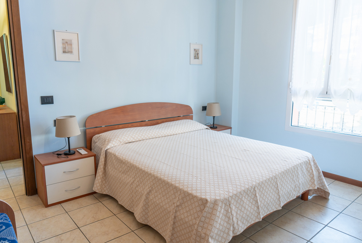 È composto da soggiorno, cucinotto, camera da letto matrimoniale, camera da letto con un letto matrimoniale e due letti singoli, doppi servizi, balcone, aria condizionata.